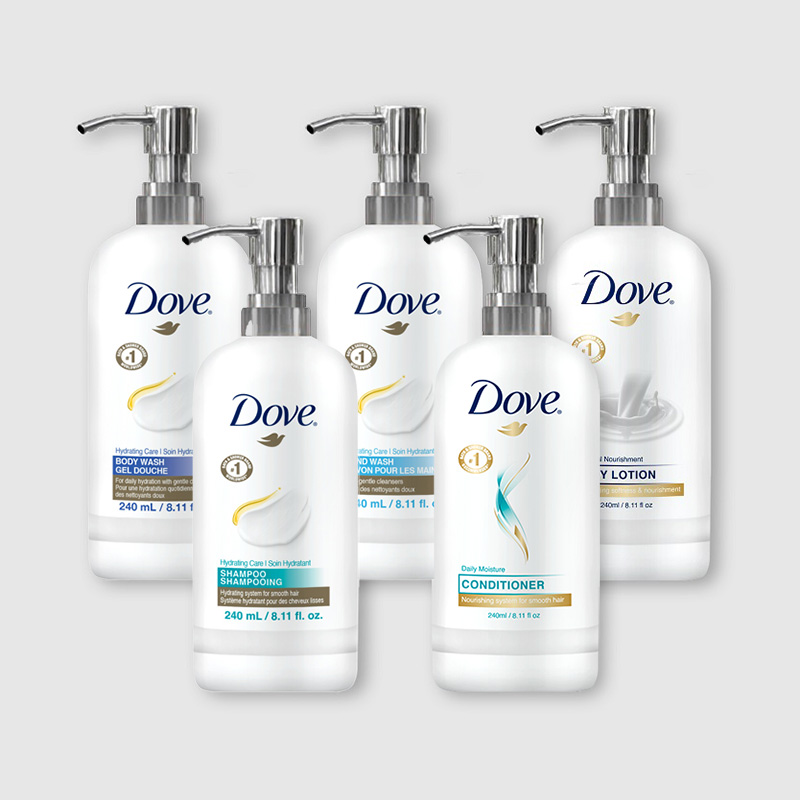 Our Dove Amenities 240 ML pump bottles are deeply nourishing, gender neutral and cruelty-free fragrances, a wholesome alternative for all skin and hair types to indulge in.