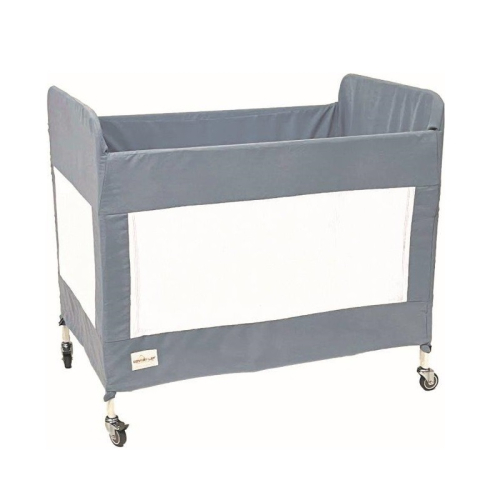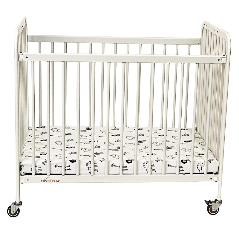 Coverplay®'s metal folding crib with fitted slipcover updates the look of the crib while keeping it clean.