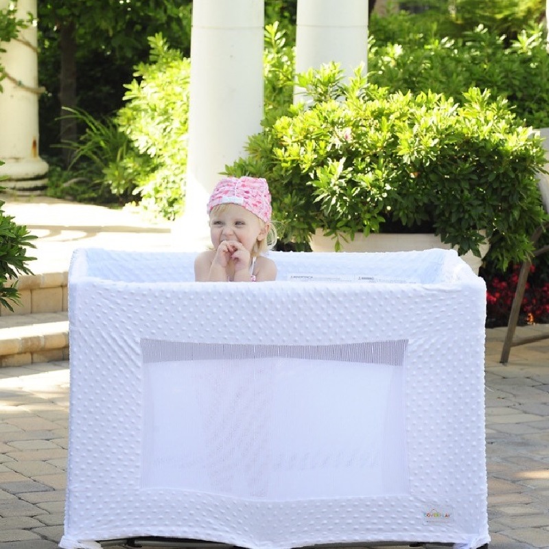Coverplay®'s super soft, white chenille slipcover for play yard updates the look of the play yard while keeping it clean.