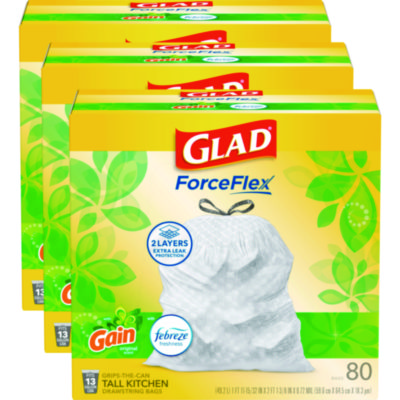 • Designed with ForceFlex Technology, Glad's patented dual-layer protection is designed to give extra flex as it expands around sharp edges and heavy loads while resisting punctures, rips and tears.